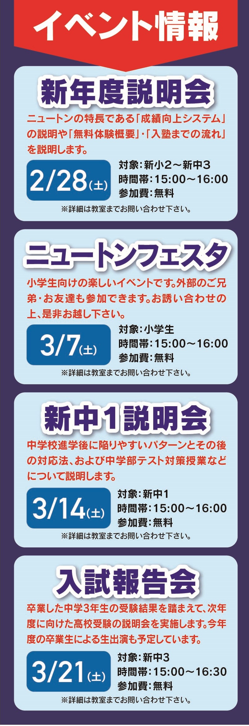 確実に学力を伸ばしたい、志望校に合格したいとお考えでしたら、ぜひ進学塾ニュートンにお問い合わせをお願い致します。